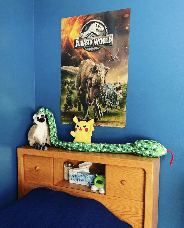 When I came home from college, we took the pieces apart, cutting the headboard down to normal size. My kids have each had a turn using it, loving the little doors. The dresser is in my bedroom. The ladder and wooden guardrails were tossed.
